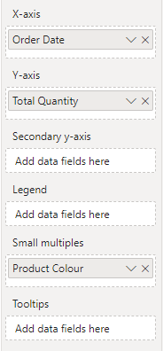 • In the Axes panel, drag the column that you wish to split the chart into multiple charts by – in my example, I am splitting by Product Colour